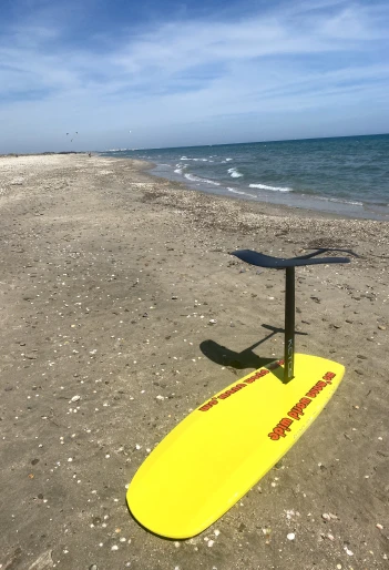 Ein Kitefoil-Board ähnelt einem Surfboard, das mit einem Mast und einer sogenannten Foil-Konstruktion ausgestattet ist, bestehend aus Fuselage, Frontflügel und Stabilisator.